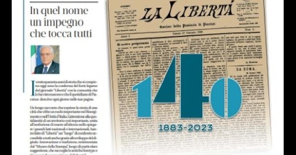 (ANSA) - BOLOGNA, 27 GEN - Sabato 27 gennaio 1883, esattamente 140 anni fa, Ernesto Prati scriveva sul primo numero del quotidiano di Piacenza: "Il nostro programma si riassume in un'unica parola: Libertà. Per tutti e per ciascuno, libertà in tutte le sue varie manifestazioni, libertà che possono venire dall'alto, libertà contro le violenze che accennano a salire dalla piazza. Ma libertà non sia licenza, non si scompagni mai dall'ordine". Il manifesto di nascita del giornale di Piacenza è pubblicato oggi sulla prima pagina di un'edizione speciale del giornale, con una controcopertina dedicata allo storico compleanno di uno dei più antichi quotidiani d'Italia, che contiene gli interventi del presidente della Repubblica, Sergio Mattarella, della presidente dell'Editoriale Libertà, Donatella Ronconi, e del direttore Pietro Visconti. "Centoquaranta anni di storia e un nome - Libertà - che indica una condizione sovente data per scontata - scrive il presidente Mattarella - e che invece, come la pace, richiede un impegno faticoso di ciascuno". Mattarella osserva come "l'attenzione alla quotidianità di un territorio così importante, unita all'ambizione di essere all'altezza nello spiegare i grandi fatti nazionali e internazionali, hanno fatto di Libertà un luogo di confronto accessibile a tutti anche grazie allo sviluppo del digitale. Un legame con il territorio - conclude - reso ancor più forte dalla scelta dell'Editore di donare il giornale alla "Fondazione Donatella Ronconi ed Enrica Prati" nella quale è rappresentata la società piacentina". (ANSA).