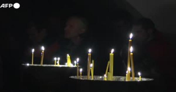 La messa domenicale celebrata a lume di candela nella cripta della chiesa di Ognissanti