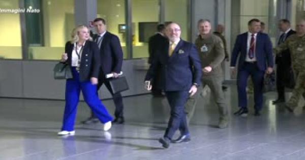 Oleksii Reznikov mostra ai giornalisti il fazzoletto