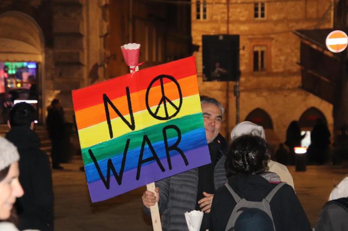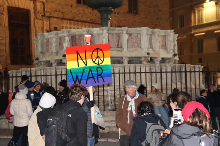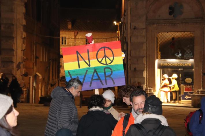 Tra i partecipanti le tradizionali bandiere caratterizzate dall’iride, il colore della pace, e la scritta «no war». Diversi quelli che a più riprese hanno scandito il coro «pace, pace».