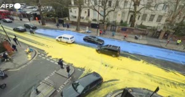 A formare una mega bandiera di Kiev. La polizia ne arresta quattro