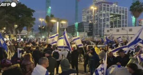 Circa duemila sostenitori del governo Netanyahu in piazza con le bandiere nazionali