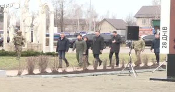 Il presidente ucraino e altri leader europei visitano la citta' nell'anniversario del ritiro delle truppe di Mosca