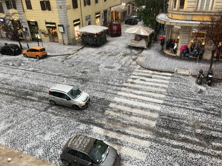 Forte grandinata su Roma nel tardo pomeriggio. Come indicato dalle previsioni meteo, dopo una giornata assolata e calda, sulla Capitale il tempo è cambiato: il segnale è stata una forte, ma veloce grandinata, che in centro ma anche nei quartieri periferici ha visto le strade riempirsi per qualche minuto di chicchi di ghiaccio fuori misura.