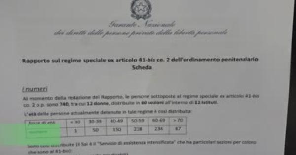 Il Garante: "740 persone al 41 bis, tra loro 12 donne"