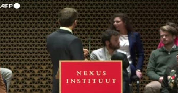 Striscione all'Aja contro il presidente francese, in visita di Stato nei Paesi Bassi
