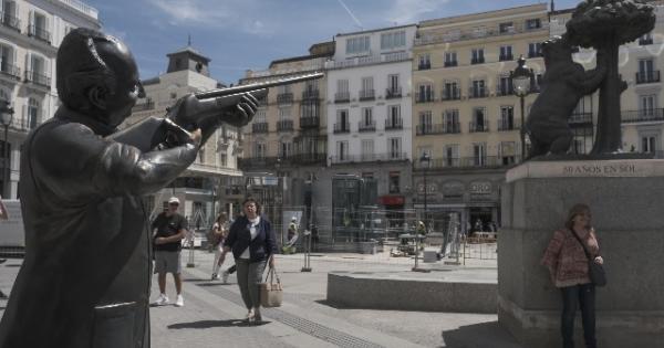 (ANSA) - MADRID, 26 APR - Juan Carlos I di Spagna intento a puntare con un fucile contro la scultura "dell'Orso e del Corbezzolo", uno dei simboli di Madrid: è la raffigurazione simbolica spuntata per alcuni minuti ieri nella capitale spagnola, con l'apparizione nella centralissima Puerta del Sol di una statua del re emerito in versione cacciatore. Nella stessa giornata, intanto, l'ex monarca aveva concluso il suo secondo soggiorno in Spagna dopo il suo trasferimento negli Emirati Arabi ad agosto 2020. Secondo diversi media, l'ideatore di questa esibizione è l'artista cileno Nicolás Mirand, intenzionato — come lui stesso ha spiegato su Instagram — a realizzare "un'opera satirica". Nello specifico, l'allusione della scena rappresentata è alla passione di Juan Carlos per la caccia e ad episodi di cui è stato protagonista che in passato hanno scatenato grosse polemiche: il più celebre risale a quando fu sorpreso, nel 2012, a partecipare a un safari in Botswana mentre la Spagna viveva uno dei momenti più duri della crisi economica vissuta lo scorso decennio. Secondo alcuni media, la statua, realizzata in poliuretano e di dimensioni 170x60x40 cm, è stata rimossa dopo alcuni minuti dalla Puerta del Sol. (ANSA).