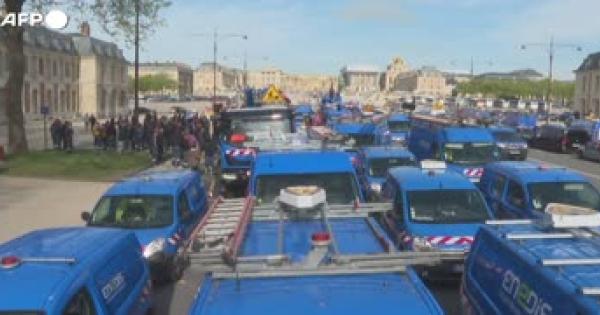 Furgoni e altri mezzi da lavoro in protesta contro la riforma della pensioni