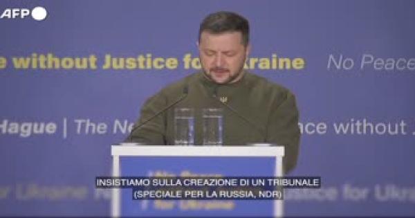 Il presidente ucraino ha parlato alla Corte penale internazionale all'Aia