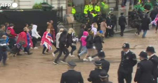 Il saluto alla folla mentre la pioggia non da' tregua. Harry assente come previsto
