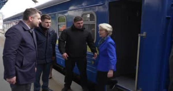 La presidente della Commissione europea accolta in stazione dal ministro degli Affari Esteri ucraino