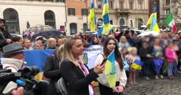 La comunita' ucraina si e' ritrovata in piazza Barberini nel giorno della visita di Stato