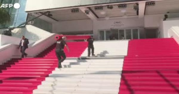 Srotolato sulla scalinata pronta ad accogliere le star