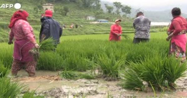 A Kathmandu gli agricoltori giocano, ballano e cantano nei campi fangosi delle risaie