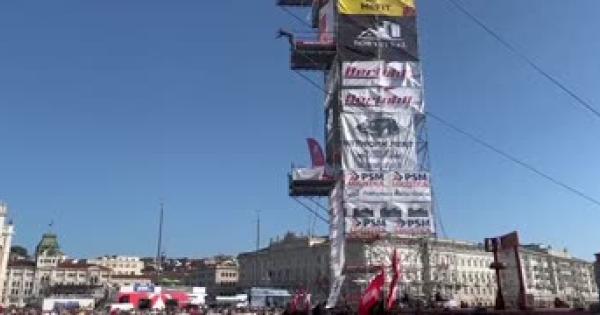 Folla di curiosi per la prima edizione del Cliff Diving a piazza Unita' d'Italia