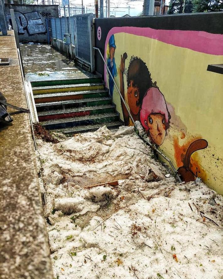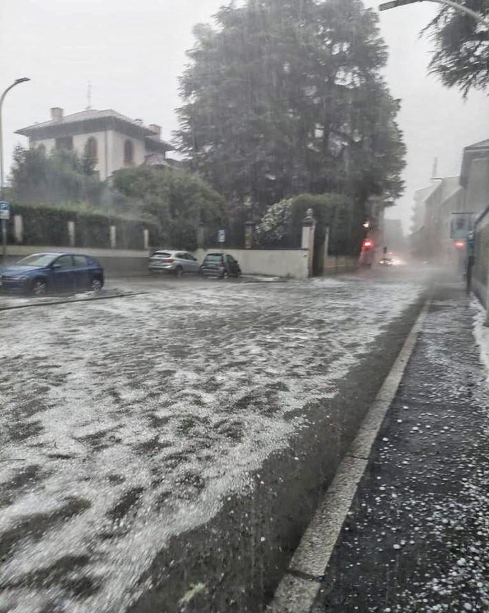 Un fiume di acqua e ghiaccio ha attraversato questa mattina la strada principale di Seregno, uno dei centri della Brianza più colpiti oggi dal maltempo. Il video del «fiume» ingrossato dalla grandine è diventato virale sui social ed è stato ripreso anche dai tg nazionali. Nelle immagini si vedono anche i commercianti che cercano di porre un argine per limitare i danni nei negozi.