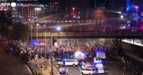 Tel Aviv, la polizia cerca di arginare i manifestanti con i cannoni ad acqua