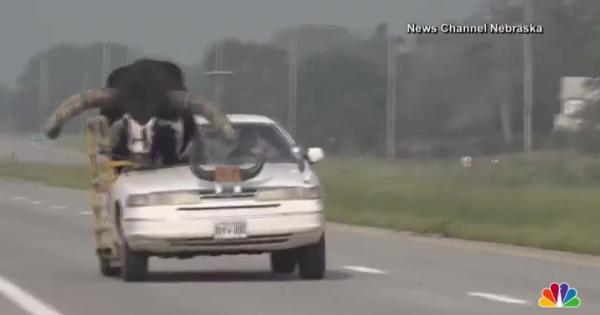 Un toro gigante con enormi corna come passeggero. E’ lo scenario che si sono trovati davanti alcuni agenti in Nebraska dopo una segnalazione al numero di emergenza. L’animale, della specie Watusi, era stato accomodato sul sedile anteriore appositamente modificato. Eliminata anche una parte del parabrezza a causa delle dimensioni delle corna. Dopo essere stato fermato, l’autista, identificato come Lee Meyer, è apparso anche sorpreso in quanto trasportava il toro da anni da una fiera all’altra. Nonostante l’evidente infrazione, gli age nti hanno deciso di non multarlo, tuttavia lo hanno messo in guardia dal continuare a trasportare l’animale in quelle condizioni. Secondo la moglie di Meyer, il toro, di nome Howdy Doody, è come un amico e un membro della famiglia per il marito. Ha detto anche che il coniuge ora pensa di essere una celebrità dopo che il video del fermo da parte della polizia è diventato virale sui siti internet. Guarda il video