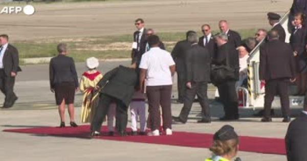 Francesco accolto all'aeroporto dalla premier francese Elisabeth Borne