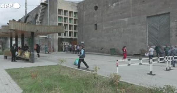 Profughi, operatori umanitari e soldati in un centro di aiuto a Goris