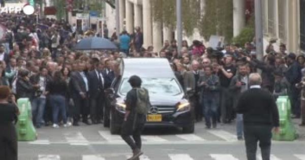 Il feretro del pittore e scultore nella galleria d'arte che porta il suo nome