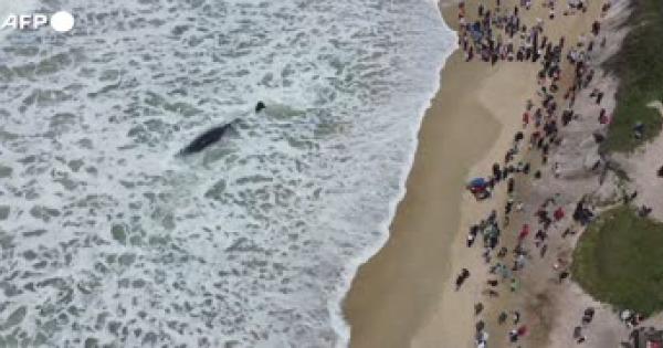 L'esemplare, una femmina di 11 metri, sul bagnasciuga di Morro das Pedras