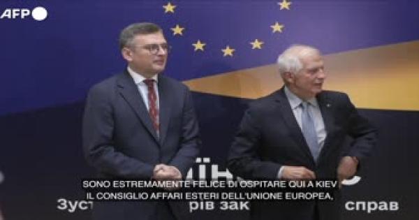 Messaggio di apertura del ministro ucraino. Accanto a lui l'Alto Rappresentante Borrell
