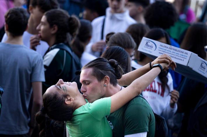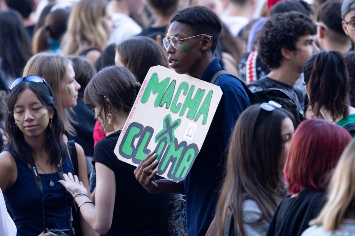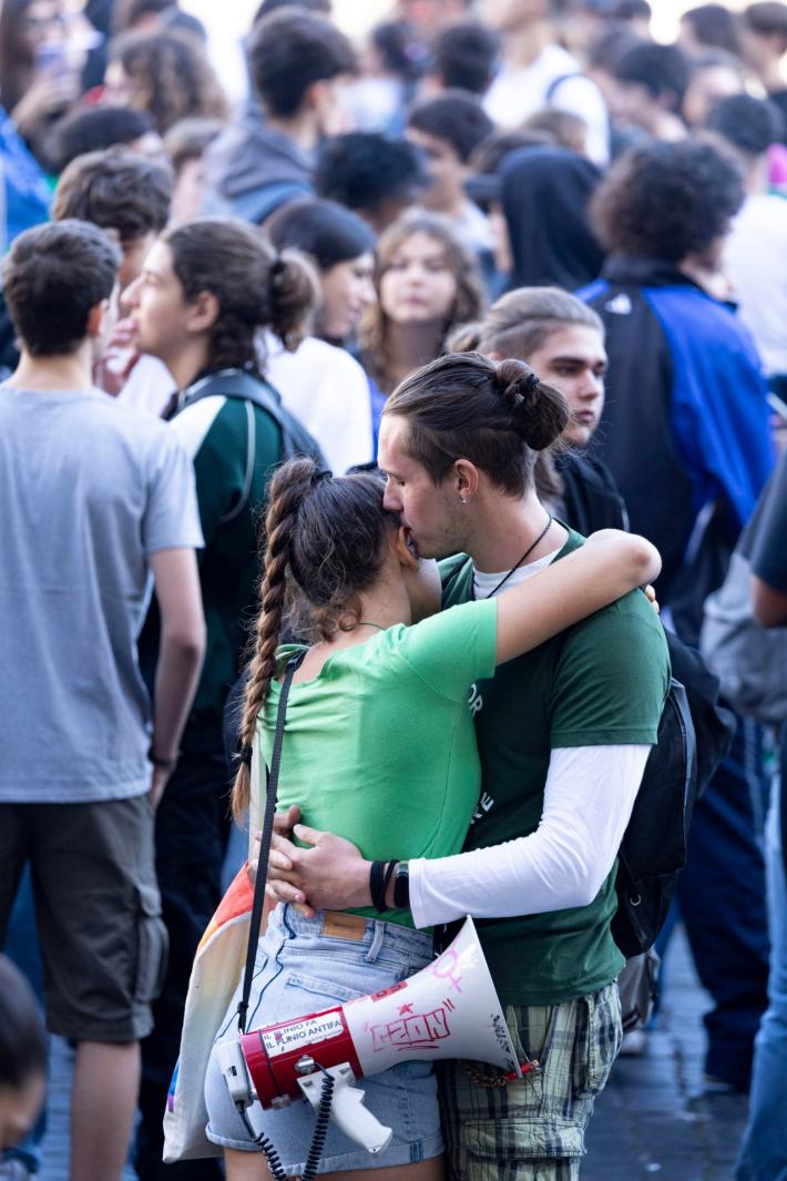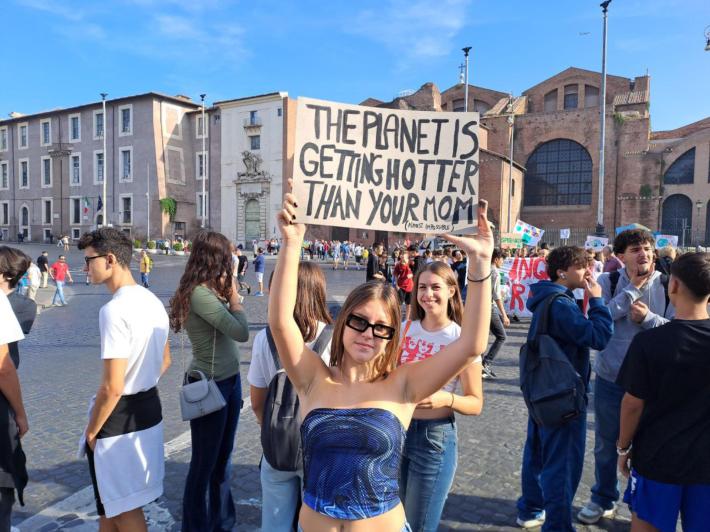E’ iniziata in piazza Indipendenza la manifestazione romana dello Sciopero del clima di Fridays for Future, che si tiene oggi in 35 città italiane. Partecipano alcune migliaia di ragazze e ragazze, sotto il sole di una bella ottobrata romana. Sugli striscioni si legge «Resistenza climatica contro il negazionismo di stato», «Bloccate le guerre, non il nostro futuro», «Artistici uniti contro devastazione ambientale e guerra», «Pensa al bene comune», «Resistenza antifa». Dagli altoparlanti escono musica rap, Raffaella Carrà e Pino Daniele. Un ragazzo con il megafono grida canzoni da stadio contro i celerini.