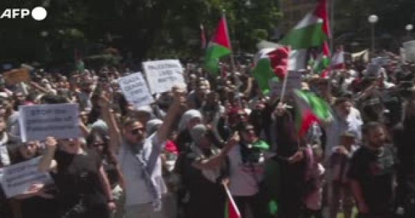 Bandiere e slogan a sostegno di Gaza