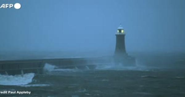 Strade allagate a Brechin, in Scozia: un'enorme onda si schianta sul faro di Tynemouth
