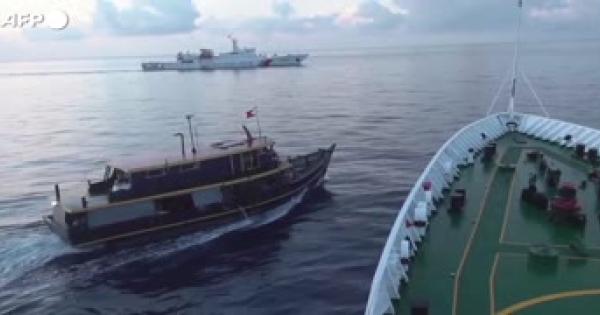 La collisione evitata per poco tra le imbarcazioni nelle immagini rilasciate da Pechino