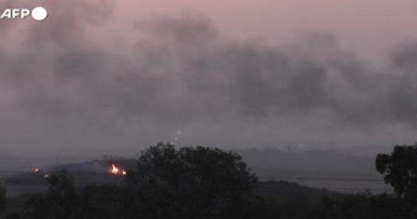 Le scie luminose e il bagliore delle esplosioni illuminano la notte