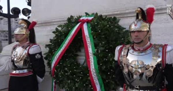 Il presidente depone una corona d'alloro sulla tomba del Milite Ignoto