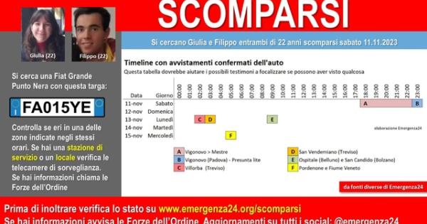 (ANSA) - PORDENONE, 16 NOV - Grazie all'odierna riattivazione di alcuni dispositivi elettronici del Piancavallo (Pordenone) che erano in manutenzione - ma che avevano in memoria i dati dei veicoli in transito - è stato ricostruito l'intero itinerario percorso, nella notte tra sabato e domenica, dalla Fiat Punto nera su cui si trovavano i due ragazzi veneti scomparsi. L'ingresso in territorio friulano è avvenuto dalla zona di confine con il Veneto, a Caneva. Pochi minuti dopo, il passaggio dell'utilitaria è stato registrato dai dispositivi di lettura targhe di Polcenigo. Il veicolo - si è appreso oggi - ha proseguito fino ad Aviano, per risalire agli oltre mille metri della stazione turistica del Piancavallo. Da lì, seguendo una strada secondaria - e poco conosciuta, la direttrice tramite Montereale Valcellina, la più consigliata dai navigatori satellitari - l'auto è scesa a Barcis, percorrendo l'arteria lungolago e poi transitando lungo l'intera Valcellina, passando per Claut e Cimolais. L'ultima registrazione è quella in uscita dalle gallerie del Vajont, tra Erto e Casso e Longarone (Belluno). Quest'ultima è una zona particolarmente impervia caratterizzata da orridi di notevole altezza. Da quelle località la Punto è tornata in Veneto per proseguire nel Bellunese. Gli investigatori stanno cercando di capire per quale ragione il conducente della vettura abbia scelto un itinerario così tortuoso: se la meta fosse stata sin da subito la provincia di Belluno, invece di proseguire verso Caneva l'utilitaria, in pochissimi minuti, e viaggiando comodamente in autostrada, avrebbe raggiunto la medesima località in meno della metà del tempo impiegato. Per verificare la presenza dell'auto o di sagome nei dirupi o nel lago, nella giornata odierna la Valcellina è stata sorvolata da un elicottero dei Vigili del fuoco decollato da Mestre. (ANSA).