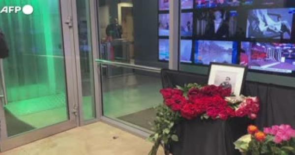 Fiori all'ingresso della redazione per Boris Maksudov, della televisione Rossiya-24