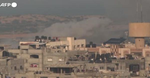 Fumo nero ed edifici in macerie dopo gli attacchi nel sud della Striscia di Gaza