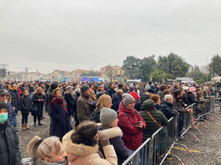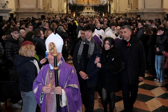 Commozione e cordoglio a Padova per l’ultimo saluto a Giulia Cecchettin, la studentessa di Vigonovo assassinata lo scorso 11 novembre dall’ex fidanzato Filippo Turetta. Davanti agli oltre 1.200 presenti all’interno della basilica di Santa Giustina e con oltre 7.000 persone raccolte in preghiera sul sagrato e in piazza, sono stati celebrati questa mattina i funerali della giovane vittima di femminicidio, la cui storia ha commosso tutto il Paese. Il feretro, arrivato all’interno del duomo in una bara bianca ricoperta di rose bianche, è stato accolto con un applauso prolungato da parte delle persone presenti per l’ultimo saluto alla ragazza. Dopo l’iter giudiziario, dal ritrovamento del corpo senza vita del 18 novembre all’autopsia, papà Gino e i fratelli Elena e Davide, abbracciati per tutta la cerimonia, la nonna e gli altri parenti di Giulia hanno salutato Giulia per l’ultima volta, raccolti nel loro dolore al quale si stringe l’Italia intera.