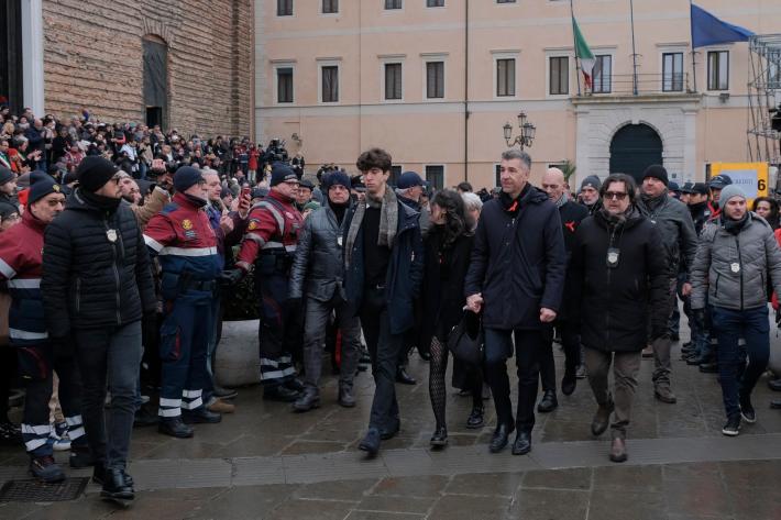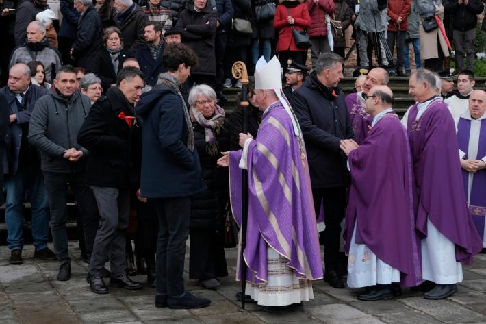 Durante il momento dello scambio del segno di pace, le autorità presenti, tra cui il ministro Nordio, e alcuni parenti hanno abbracciato i familiari di Giulia in un momento molto toccante, che ha fatto da preludio al discorso conclusivo da parte di papà Gino: "Abbiamo vissuto un momento di profonda angoscia, siamo stati travolti da una tempesta terribile, da una pioggia di dolore che sembra non finire mai - ha esordito ringraziando tutti i presenti - Giulia era una giovane donna, straordinaria, allegra, vivace, mai sazia di imparare. Nonostante la sua giovane età, era diventata una combattente, come diceva lei una oplita. Il suo spirito indomito ci ha ispirato tutti - ha aggiunto, affrontando poi il tema del femminicidio - Il femminicidio è il risultato di una cultura che svaluta la figura delle donne, vittime di chi avrebbe dovuto amarle. Come può accadere tutto questo, come può essere accaduto a Giulia? La responsabilità educativa ci coinvolge tutti, famiglie, informazione, scuola, società civile. Mi rivolgo agli uomini, noi per primi dovremmo essere agenti di cambiamento, parliamo agli altri maschi che conosciamo. Dovremmo essere attivamente coinvolti, ascoltando le donne e non girando la testa dinnanzi ai segnali di violenza, anche lievi. La nostra azione è cruciale. Da questa violenza si esce fuori sentendosi tutti coinvolti, anche quando ci si sente tutti assolti".
