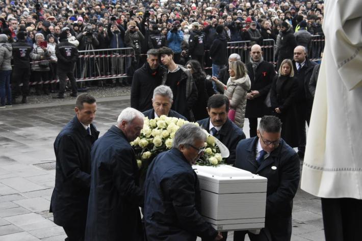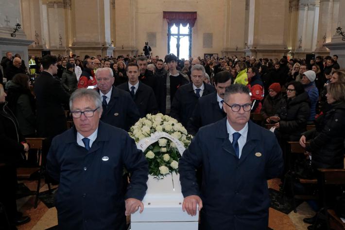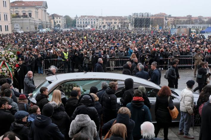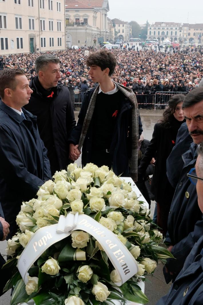 Al termine delle sue parole un lungo applauso da parte dei presenti e uno straziante abbraccio tra papà Gino e i due figli Elena e Davide. All’uscita del feretro, che verrà condotto a Saonara, il comune in cui è nata e riposa la madre Monica, per una cerimonia più raccolta e per la tumulazione della salma, tanta commozione e i campanelli e le chiavi sbattute dalla folla che ha accolto l’invito a fare rumore in memoria di Giulia.
