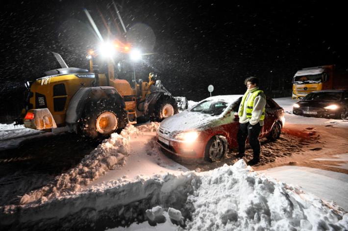 La polizia ha invitato gli automobilisti intrappolati a cercare di restare al caldo e a non abbandonare i propri veicoli andando via a piedi e l'esercito sta intervenendo insieme ai soccorsi. Tuttavia, dopo quasi 24 ore, l’insofferenza cresce: «Sono seduto qui dalle 10 di ieri mattina», ha dichiarato Jimmie Andersson, uno degli automobilisti che ha parlato stamattina con la Tv svedese, Svt «Ma inizia a esserci un po' di speranza, stanno iniziando a spalare davanti a noi e le auto iniziano a muoversi». Un altro automobilista ha riferito di essere bloccato dalle 11,30 di mattina: «Non abbiamo né cibo né acqua. Ora ho camminato per due chilometri con la neve fino alle ginocchia per comprare del cibo per me e per la mia ragazza che è ancora in macchina».