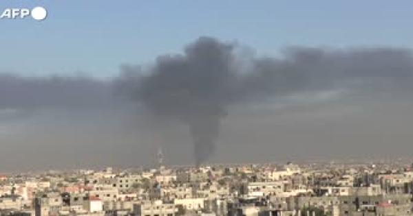 Conseguenze dell'attacco israeliano visibili da Rafah, a sud della Striscia