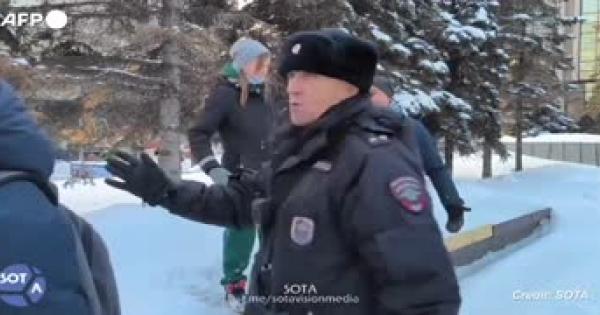 Gli agenti respingono la gente radunata sul posto e chiedono documenti a un manifestante
