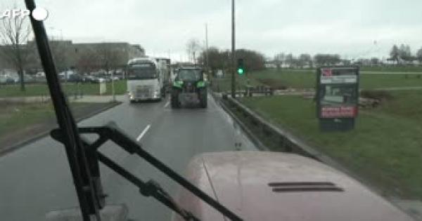 Lunga fila di trattori sfila per le strade di Arras suonando clacson