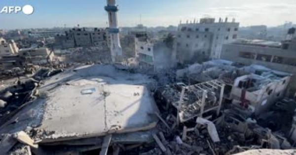 Palestinesi camminano tra le macerie del luogo di culto attaccato da Israele