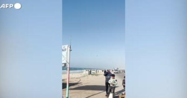 La popolazione accorre a recuperare i pacchi lanciati con i paracadute