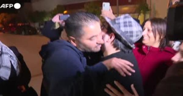 Khalifa Guesmi, corrispondente della stazione radiofonica Mosaique FM, abbraccia i suoi sostenitori