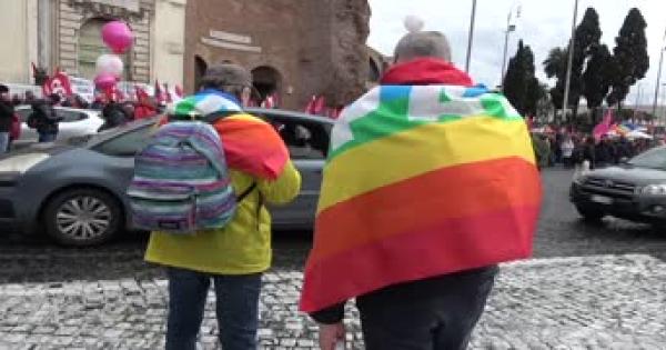 Manifestano anche D'Alema e Landini, che chiedono il 'cessate il fuoco' a Gaza