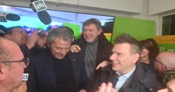 Festeggiamenti nel comitato di Pescara dopo il voto alle regionali