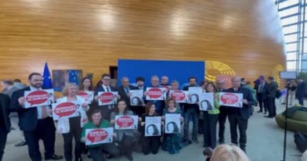 Davanti all'emiciclo del Parlamento europeo a Strasburgo