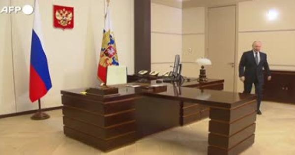 Nelle immagini dal Cremlino il presidente conclude facendo "ciao" con la mano